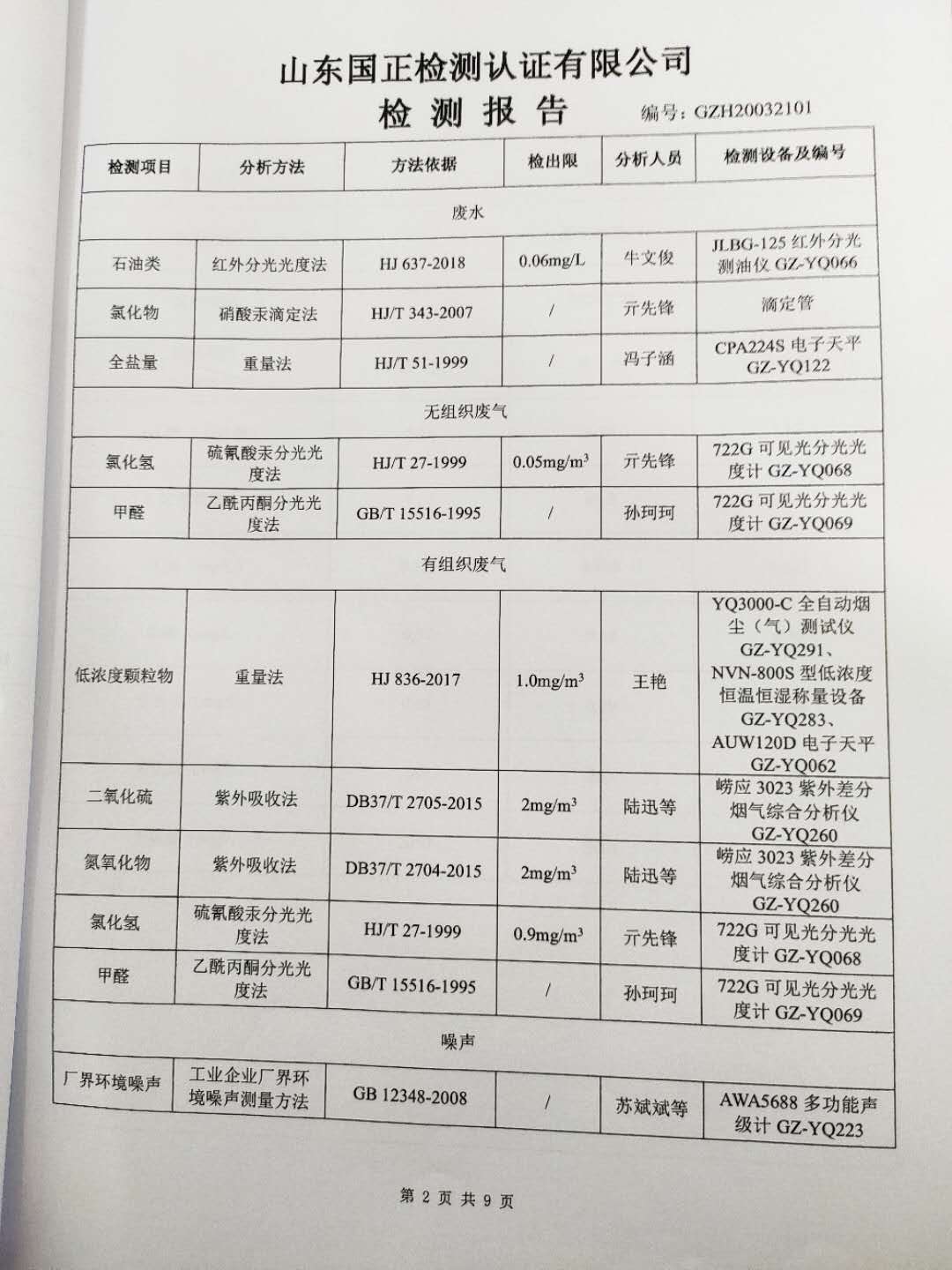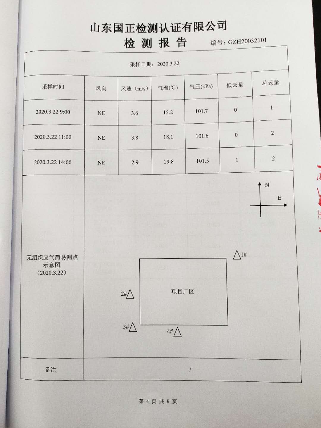 | 主要內(nèi)容 | 與山東國正檢測認證有限公司簽訂環(huán)境檢測協(xié)議,委托第三方機構對我公司進行環(huán)境檢測,檢測頻次、地點及項目等與環(huán)評報告要求一致。 |