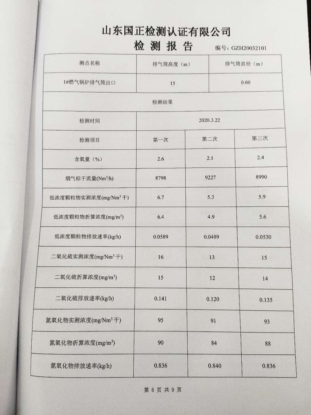 | 排放口1 | 鍋爐房南 | 排氣筒 | 二氧化硫 | 14 | 2020.4.15 | 委托檢測 | 936 | 19720 | 200 | 否 | ||||||||||
